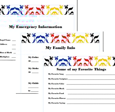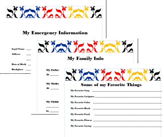 The Front section is devoted to documenting your emergency information, personal history, family history, your favorite things and photos of yourself that you love.